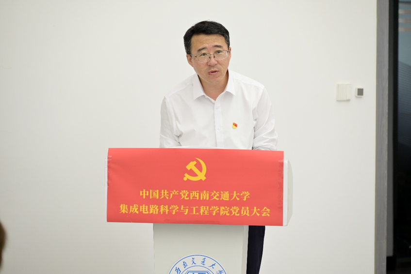 康国政对大会的召开表示热烈祝贺,充分肯定了公司党委的工作成绩,对全体党员提出几点希望:一是希望各位党员同志持之以恒用习近平新时代中国特色社会主义思想凝心铸魂,持续强化理论武装;二是希望学院新一届党委班子进一步提高政治站位,强化担当作为;三是希望学院牢牢把握国家集成电路产业发展机遇,积极响应国家集成电路产业发展战略需求,聚焦关键核心技术攻坚,依托国家级现代产业学院平台,深化与中车株洲所的产学研协同创新,为推动我国从集成电路大国迈向集成电路强国贡献力量。