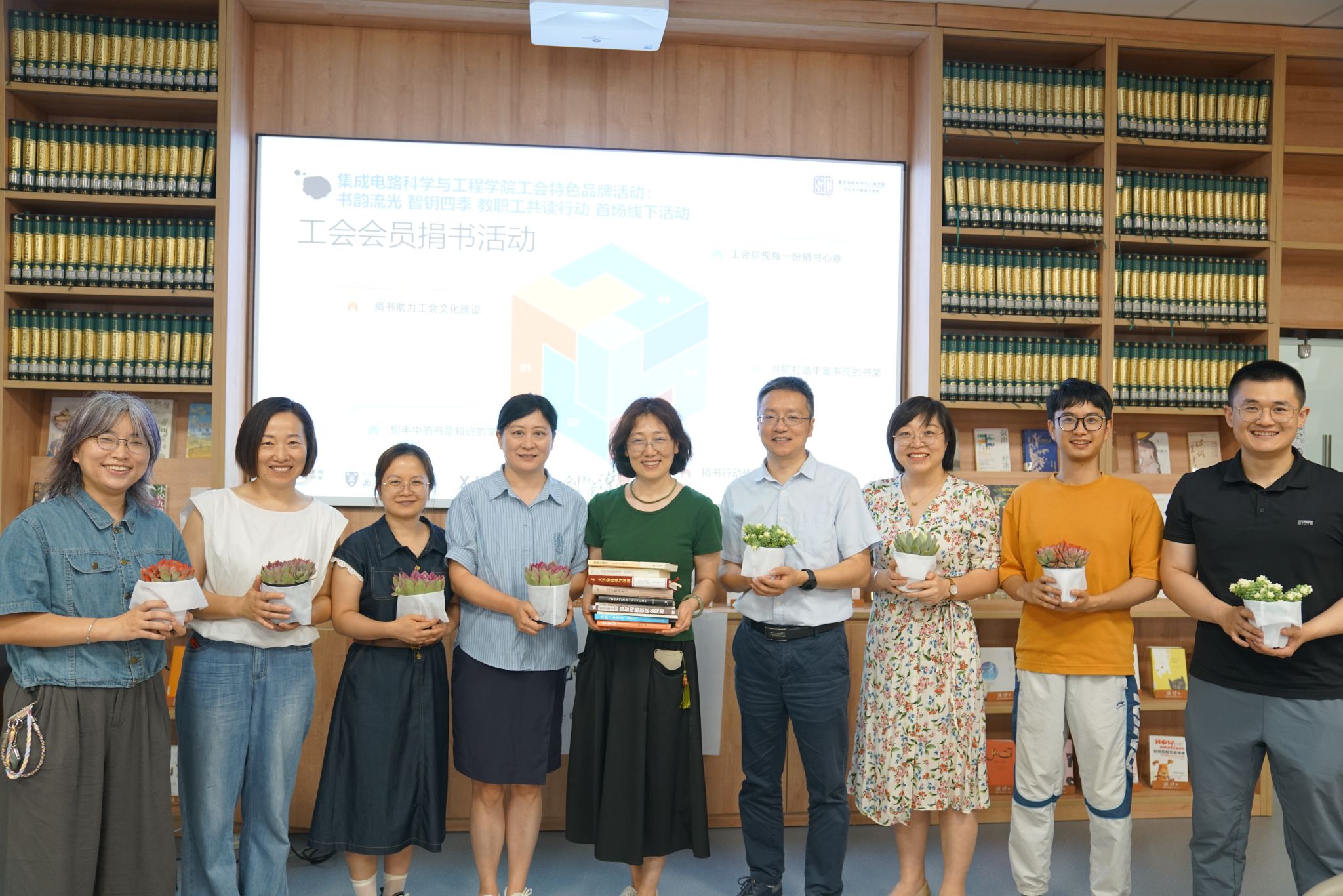 紧接着,现场举行了一场温馨的书籍捐赠活动。TapTap188改名(点点)多位教师积极响应,将珍爱的书籍捐赠给学院工会,以实际行动支持资源共享和绿色阅读。学院工会主席吕雁老师对教师们的积极参与表示感谢,并回赠了鲜花,象征着知识的传递与情感的交流,现场气氛温馨而感人。