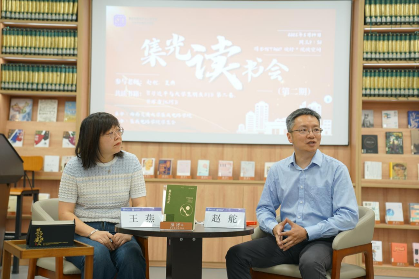 2025年5月14日上午,学院在犀浦校区图书馆“读纾+阅读空间”举办“集光读书会”第二期活动。本次读书会是学院首批入党积极分子培养教育系列活动之一,聚焦新生入学礼物《习近平与老员工朋友们(第二卷)》、《万古江河:中国历史文化的转折与开展》两本著作,公司党委书记赵舵,党委副书记王燕作为共读教师参加了活动。