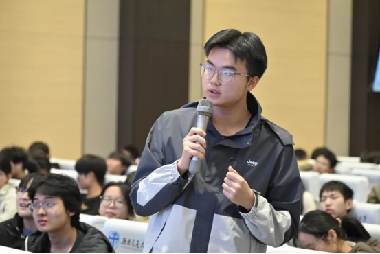 随后,学院青年讲师团讲师谢东为大家带来了生涯发展与就业规划的专题讲座,他以“适合自己的选择,就是最好的选择”为主线,生动讲述了自己从本科到博士后十一年间的求索历程与心路体会。作为青年教师,谢东结合自己在专业选择、社团参与、竞赛科研以及海外联培等方面的真实经历,鼓励同学们“在体验中定位自我,在尝试中明确方向”。他特别分享了如何通过课程学习、竞赛参与与科研训练之间的良性互动,逐步构建起个人核心竞争力。同时,他以自身在丹麦、德国的学习见闻为例,为同学们详细阐述了跨文化学术经历对拓宽视野、激发创新思维的重要价值。