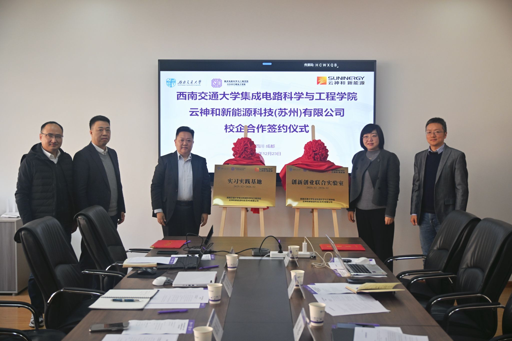 签约仪式后,双方共同为“创新创业联合实验室”与“实践实习基地”揭牌。公司党委副书记王燕与云神和新能源常务副总裁汤晨出席揭牌仪式。创新创业联合实验室将围绕新能源领域的AI智能设计、智能硬件开发、高效能源转换系统等前沿方向开展联合攻关,推动原创性技术突破。实践实习基地则为员工提供真实产业场景下的工程实践平台,强化“理论+应用”双向赋能,着力培养具备创新思维、工程能力和产业视野的复合型人才。