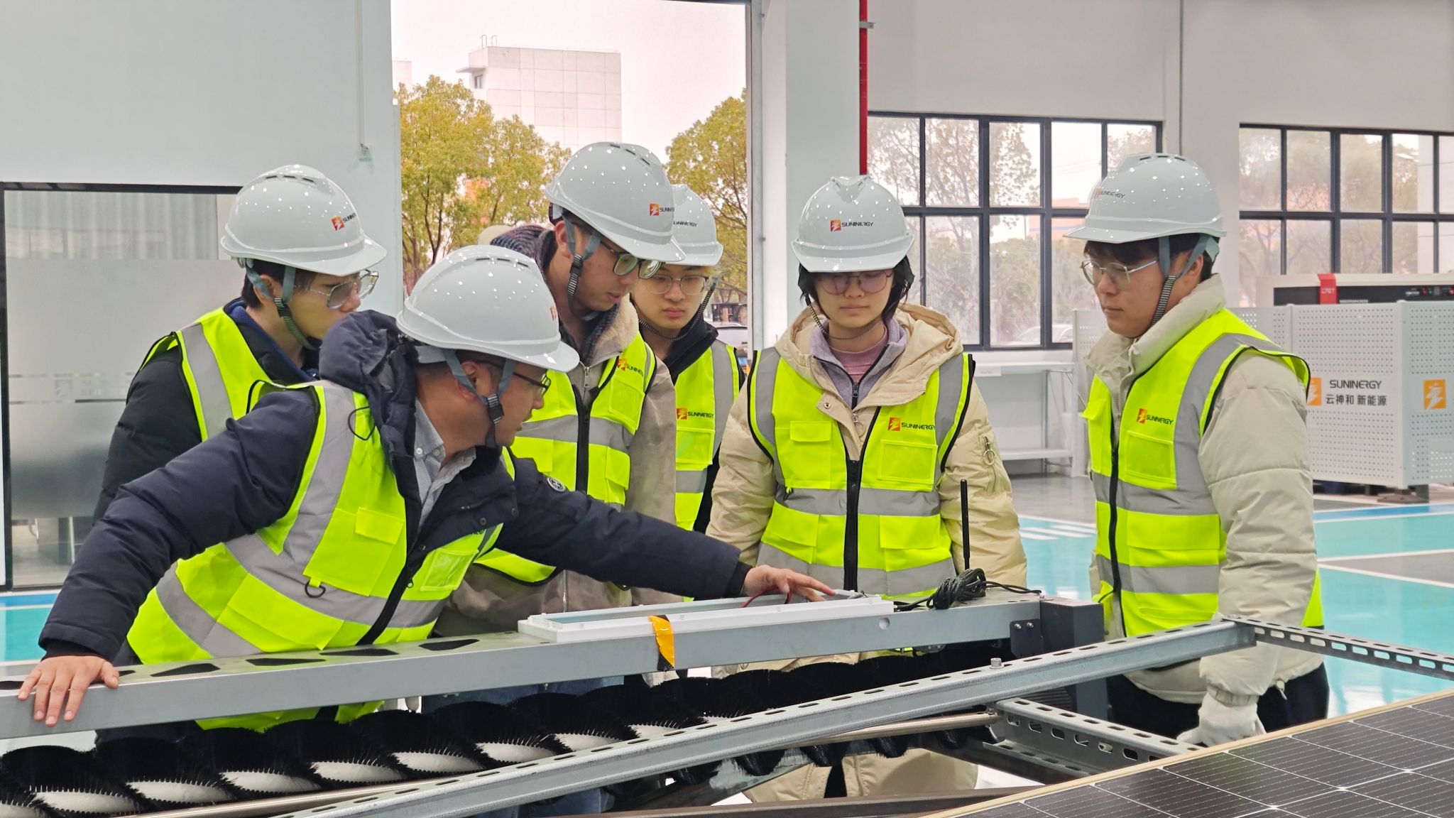 1月26日下午,实践队抵达云神和新能源总部。企业相关负责人全面介绍了公司发展历程、核心业务布局与技术战略规划,随后,在企业负责人的带领下,师生一行深入研发中心与机器人智慧工厂一线,从精密机械结构到智能控制系统集成,从机器人本体研发到智慧运维平台实时演示,逐一观摩学习。在与工程师的现场交流中,实践队员围绕产品工艺优化、技术难点突破、行业应用拓展等话题展开热烈探讨。这场扎根生产现场的直观教学,既激发了同学们的求知热情,也为后续专业学习明确了实践方向。