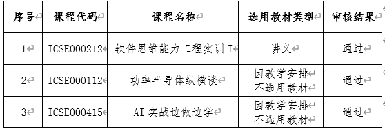 依据《TapTap188改名(点点)教材管理实施细则》(西交党〔2024〕35号)相关教材选用规定,根据学校教务处《关于开展2024-2025学年第二学期本科教材选用和征订工作的通知》要求,学院教材建设工作组已完成公司2024-2025学年第二学期开课课程的教材选用审核工作,现将审核结果公示如下: