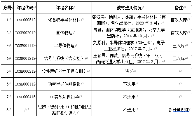依据《TapTap188改名(点点)教材管理实施细则》(西交党〔2024〕35号)相关教材选用规定,根据学校本科生院《关于开展2025-2026学年第二学期本科教材选用及审核工作的通知》要求,学院教材建设工作组已完成公司2025-2026学年第二学期本科开课课程的教材选用审核工作,现将审核结果公示如下: